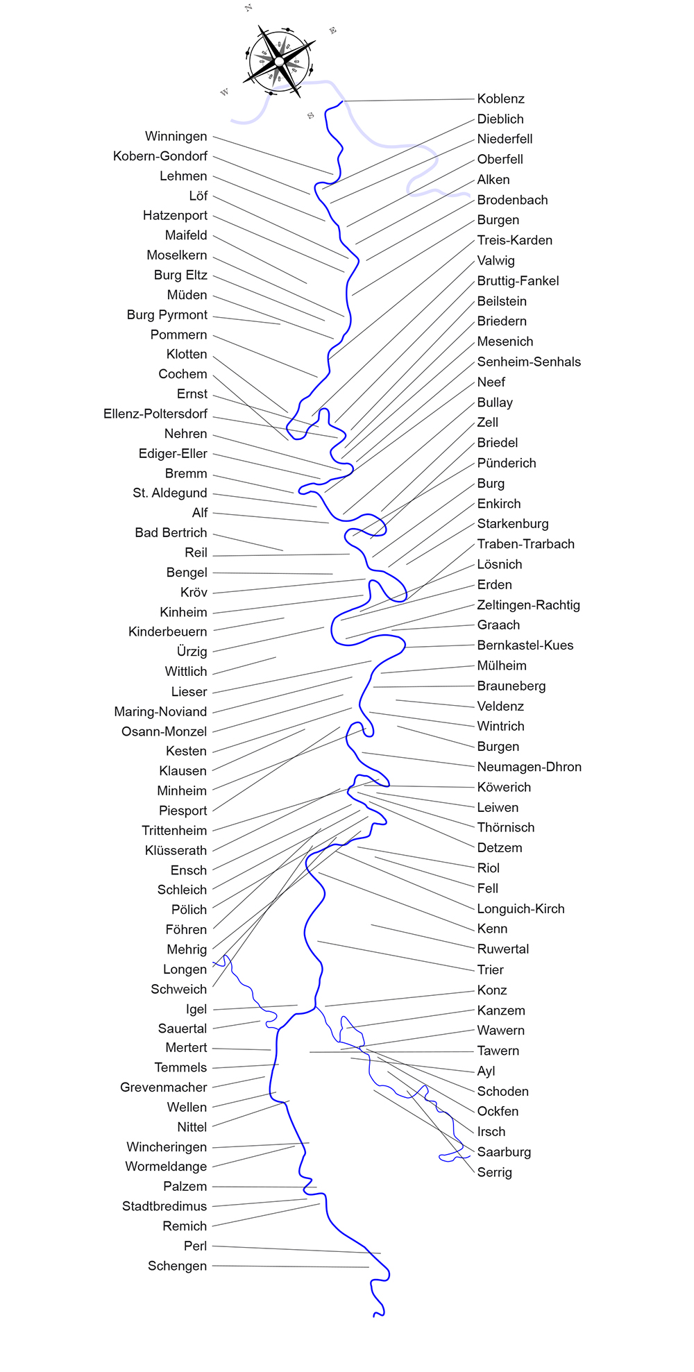 karte moselorte: Castles on the mosel river. Mosel entlang karte fluss reisemobil routen kilometer. Mosel wein wine regions karte plus municipalities areas locations. Übersichtskarte mosel. Die schönsten orte an der mosel: das sind sie!. Moselorte karte